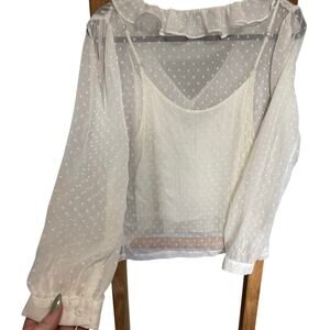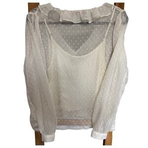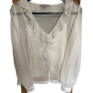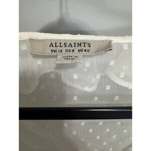 Allsaints Ari Blouse Top Romantic Ruffles Textured Polka Dots White Size 8