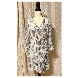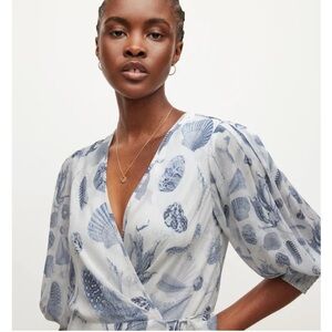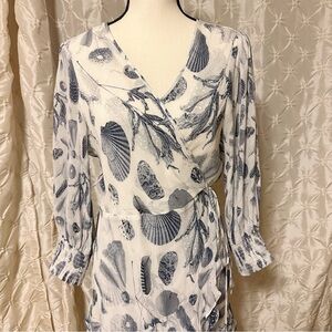 Allsaints Ari Oceano Long Sleeve Wrap Dress White Blue Shell Beach All Saints