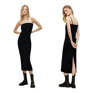 Allsaints CHARLIE Black Spaghetti Strap Midi Dress With Back Slit Sz 8