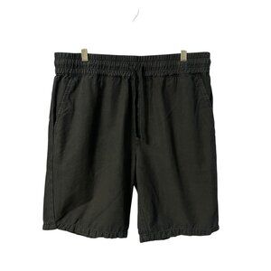 Allsaints Drawstring Shorts Mens Large Black Casual Fit linen Blend Lightweight