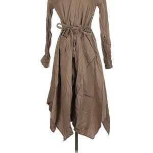 Long sleeve, tie neck, shirtdress, brown, midi-calf length