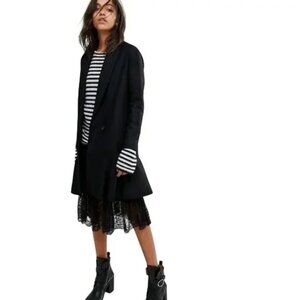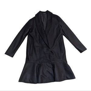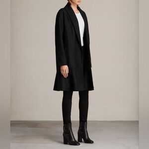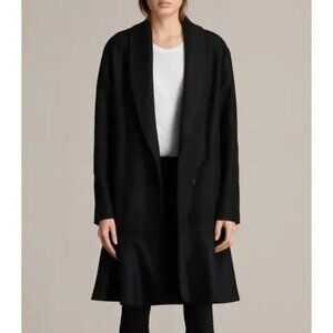 Allsaints Grace Coat Wool Ruffle Hem Long Overcoat Jacket Black size XS