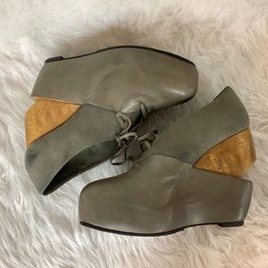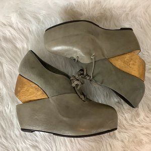 Allsaints Gray Graphite Bura Platform Oxford Wooden Wedge Heels EU 38