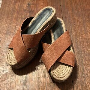Allsaints Harlem Espadrille Platform Slide Sandal Rust Brown