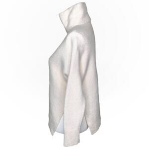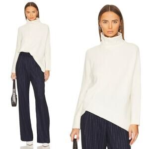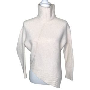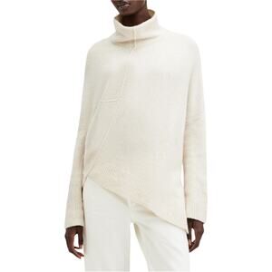 Allsaints Ivory White Cream Lock Roll Neck Asymmetric Wool Turtleneck Sweater. Cozy up in this contemporary, asymmetric sweater featuring raised seams that add structure to the loose, side-slit silhouette. All photos except for 1-6 are of the actual item. Size XS. Great condition. 60% wool, 27% polyamide, 10% yak, 3% elastane. Measurements (approximate): PTP 21", length 21"-27.5", sleeve length from neck 26". This style currently retails for $279.
