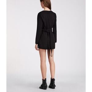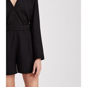 Allsaints Karine Playsuit Black Deep V-Neck Wrap-Over Belt Romper Size 6