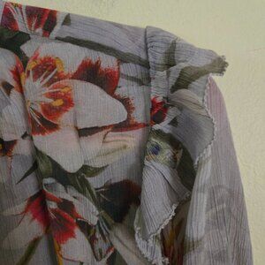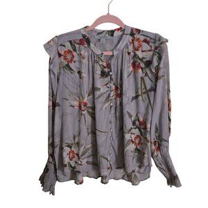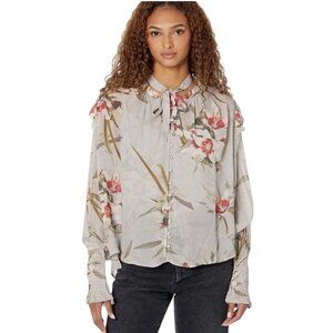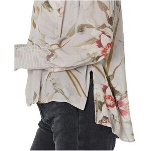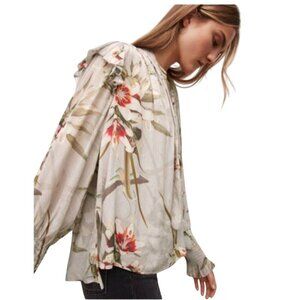 Allsaints Lara Kuroyuri Floral Long Sleeve Ruffled Blouse Quiet Luxury Size 2