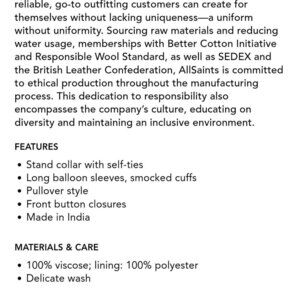 Elegant Allsaints blouse featuring a stunning floral print with sheer balloon sleeves, covered button closure and smocked cuffs. Designed in a neutral palette for a quiet luxury feel, the ruffled detailing adds a touch of femininity. Perfect for day-to-night transitions with effortless style. Missing neck tie