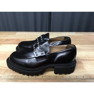 Allsaints Lola Flats Women's 8 Black Leather Slip-On Round Toe Studded Loafers