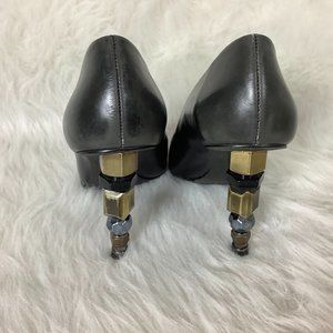 Allsaints Metallic Gold & Silver Beaded Heel Black Pumps EU 38