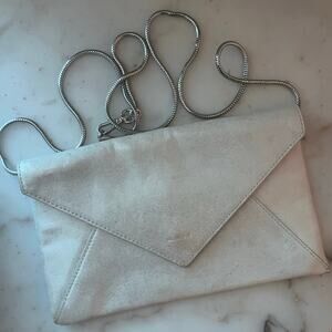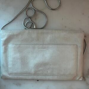 All Saints Metallic Silver Clutch Handbag Crossbody Metal Strap Removable Logo
