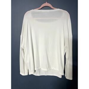 This top is a perfect layering piece. Easy to pair and great for everyday wear. There is a stain on the shirt - included in the photos. Priced lowered based on stain