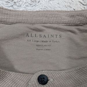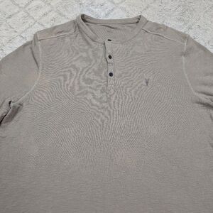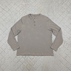 Allsaints Shirt Mens XXL Beige Tan Muse Henley Long Sleeve Ramskull Cotton