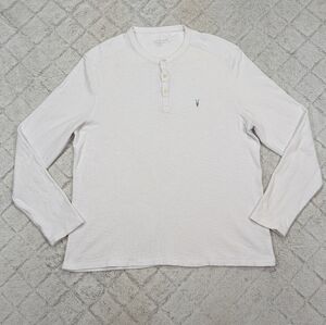 Allsaints Shirt Mens XXL White Muse Henley Long Sleeve Ramskull Cotton Casual