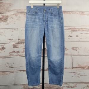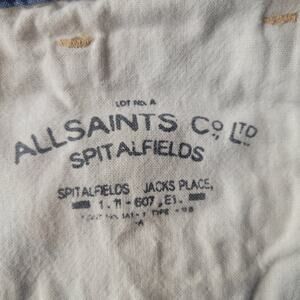 Allsaints Spitalfields Jack's Place straight leg (*maybe* boyfriend fit, I am unsure) blue jeans. Lighterweight denim material. Very good preowned condition, Size: 27