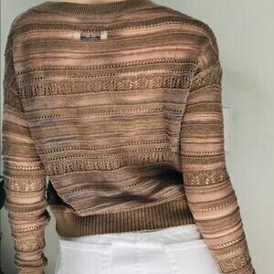 Women’s Allsaints Spitalfields Metallic Agni Jumper Pullover Sweater Size 2 Brown. Open Knit fabric with metallic detail. Ribbed cuffs, neck and waist. Excellent Pre-owned condition. Shipped with USPS Priority Mail. Please see the photos for more details and measurements. Smoke and Pet free home. Thank you so much for looking!!