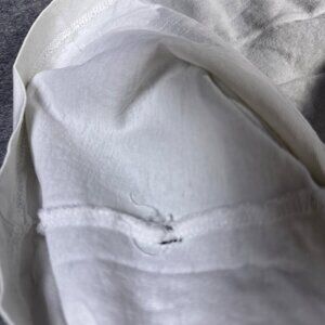 Underarm discoloration on both sides, light yellow stains near neckline.