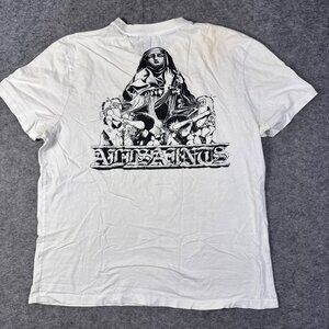 Allsaints T Shirt Mens Small White Graphic Short Sleeve Religious Nun Distressed