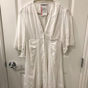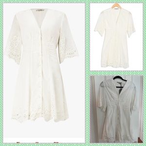 The Una Dress features vintage-inspired broderie detailing to the sleeves and hem. Shaped to a flattering fit-n-flare silhouette.