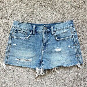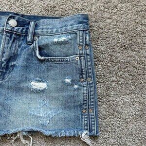 Allsaints Women’s Denim Distressed Star Stud Embroidered Festival Shorts Sz 25