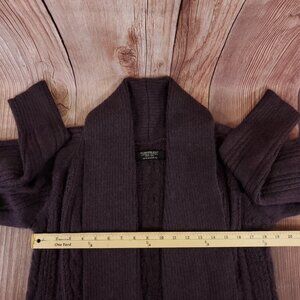 Allsaints Womens Size 10 Galaxy Flex Cardigan Open Front Cable Knit Mohair Wool Purple Brown