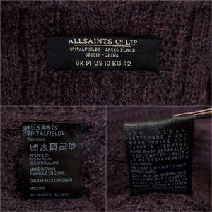 Allsaints Womens Size 10 Galaxy Flex Cardigan Mohair Wool Purple Brown