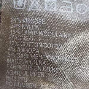 * 34% viscose, 24% nylon, 18% lambswool, 17% cotton, 4% angora, 3% cashmere