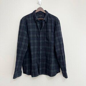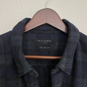 Allsaints Wool Blend Button Down Shirt Size XL Men's Blue Green Long Sleeve