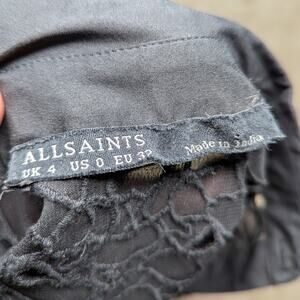 Allsaints Zepetelli Black Sheer Floral Eyelet Lace Mini Button Up Shirt Dress 0