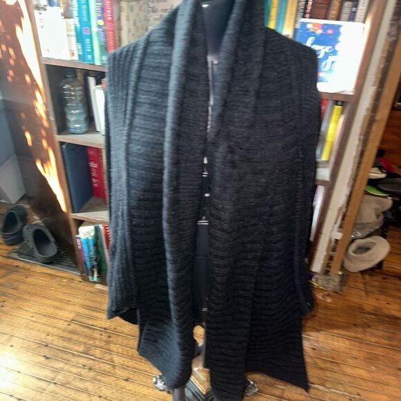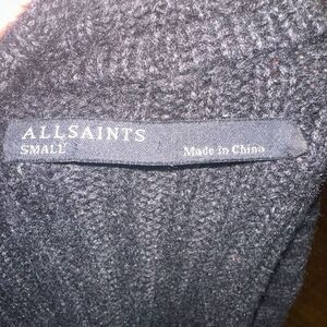 Allsaints wool/nylon/alpaca blend, drape front, cozy, luxe, charcoal cardigan. Very fitted sleeves, with a flowy body, this cardigan is perfect for a variety of styles. Approximately 19 inches from armpit to armpit and 29 inches long. In good, used condition. From a pet and smoke free house. Happy to bundle!