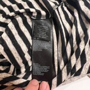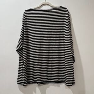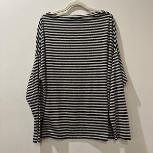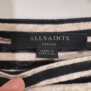 Allsaints knit cotton blend long sleeve boatneck tee small black ivory striped