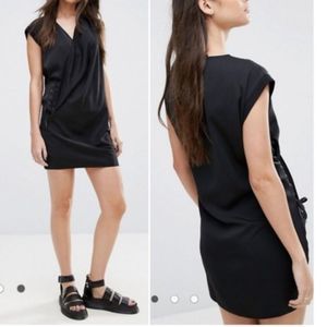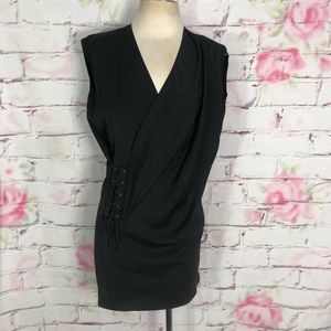 Fun flirty and feminine side zipper laced side black draped slouchy dress. Excellent used condition