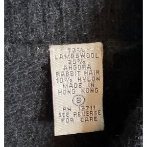 Made of wool and acrylic materials, this sweater is hand wash only and fits true to size. The black color and regular fit add a touch of sophistication to any outfit. This sweater is perfect for those who love vintage fashion and want to add a unique piece to their collection.