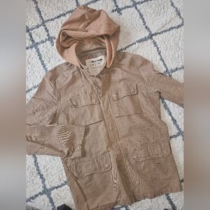 All-son Brand Military Style Button/snap Utilty Hooded Jacket Large