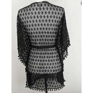 Allthreads Cover up Sz 4-12 Black bobble fringeBust to 40"Lace+ tassels Nylon/sp