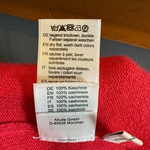 The Allude 100% Cashmere Open Front Half Sleeve Shortie Cardigan in Salmon Red-Orange is a luxurious and stylish sweater for women. Made from high-quality cashmere knit fabric, this cardigan features a solid pattern with short sleeves and an open front design. It has a regular fit and is perfect for layering in all seasons. The Allude brand ensures both fashion and quality, making this cardigan a versatile and chic addition to any wardrobe.