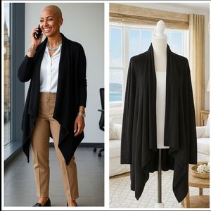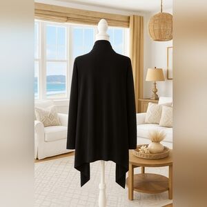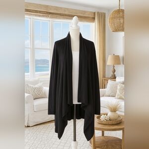 Allude 100% Cashmere Draped Black Women's Size Large boho-chic open front longline cardigan sweater **Chest 45" Length 37"