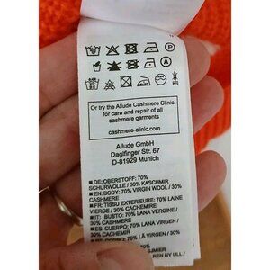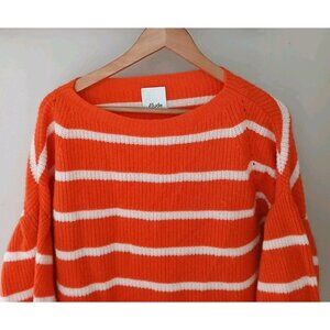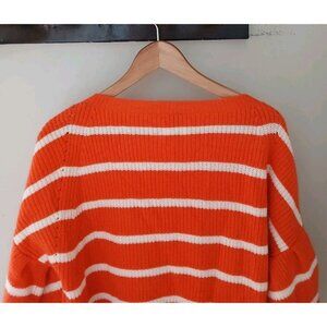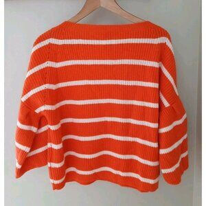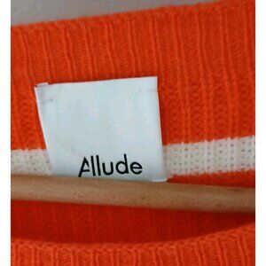 Allude Cashmere Wool Blend Sweater. Estimated as a Size Large. Orange and white stripes. Three fourth balloon sleeves. 70% wool, 30% cashmere.
