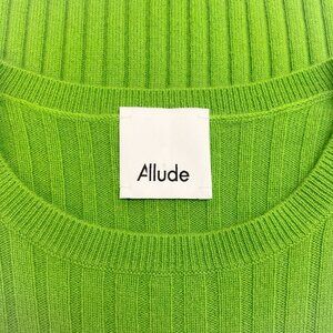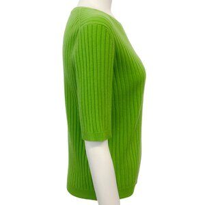 Allude Lime Green Cashmere Ribbed Short Sleeve Sweater