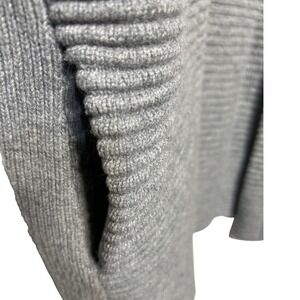 Wrap yourself in luxurious comfort with this stunning Allude cardigan. Meticulously crafted with a distinctive ribbed knit design, this open-front cardigan drapes beautifully, offering both warmth and effortless style. The unique design and relaxed fit create a silhouette that is both modern and timeless. This cardigan offers versatility and sophistication. The neutral gray hue complements any outfit, making it a perfect layering piece for both casual and elegant ensembles. Ideal for cozy evenings by the fire, brisk autumn walks, or adding a touch of refined comfort to your everyday wardrobe. Measurements are about 24" wide from underarm to underarm and 30" long.