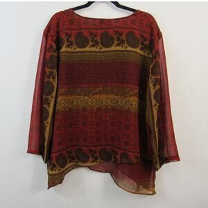 Allure 2X Red Brown Ombre Paisley Printed Top Funky Plus Size Cover Up