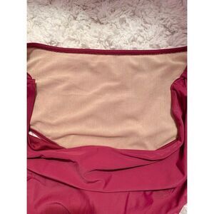 Allure by IMG Wine colored Cutout Junior Bikini Swim Bottoms plus size 20-22. Has a built in front mesh for tummy support. Cute bow cutouts on both hips. Full coverage.