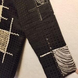 Allure Womens Size Medium Blazer Jacket Long Sleeve Button Black Cotton Rayon Blend Mixed Media Lagenlook Career Vintage Artsy Art to Wear