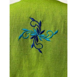 Allure Womens Jacket Green Blue Floral Long Sleeve Toggle Embroidered M