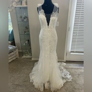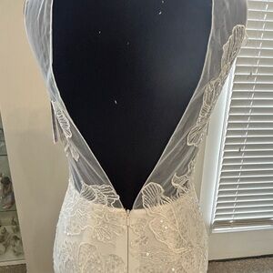 Beautiful deep free front and back pretty floral tulle lace with delicate sequin beading dress was a store sample in excellent condition just a few loose speeds and threads has not been al