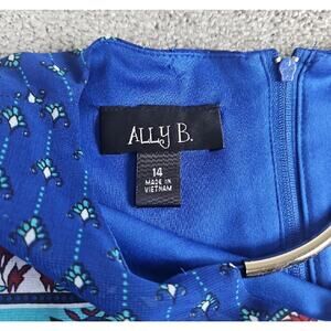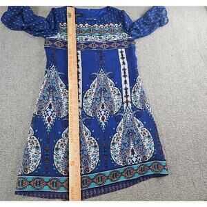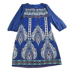 Ally B Blue Boho Paisley Print Dress Women’s Size 14 3/4 Sleeve Lined Shift Chic