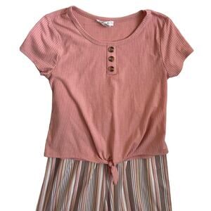 Ally Girl Set L Rose Pink Ribbed Top Striped Wide Leg Pants Comfy Casual Stretch