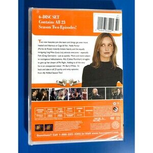 The product is the complete second season of the TV show "Ally McBeal" on DVD. Released in 2010, this 6-disc set is new and sealed, making it a great addition to any comedy fan's collection. The show follows the adventures of a quirky and lovable plaintiff lawyer in New York City. With English language and a NR rating, this DVD set allows viewers to binge-watch all the episodes from the second season of this beloved TV series.