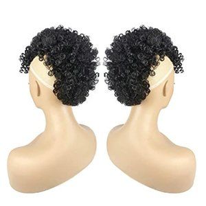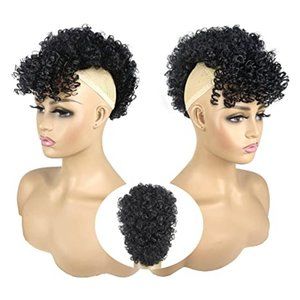 Brand New in Clear Bag , Comes With 2 Free Gifts - Eyelashes & Free Bobby pins . Allyreetress Afro Puff Drawstring Mohawk Ponytail Wig with Bangs for Black Women Synthetic Short Kinky Curly Bun With Bangs Non Drawstring Ponytail Extension Hairpieces with 4 Clips(1B Black)