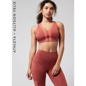 Allyson Felix x Athleta Collab Sports Bra Womens Small Legend V-Neck Cross Back Rust